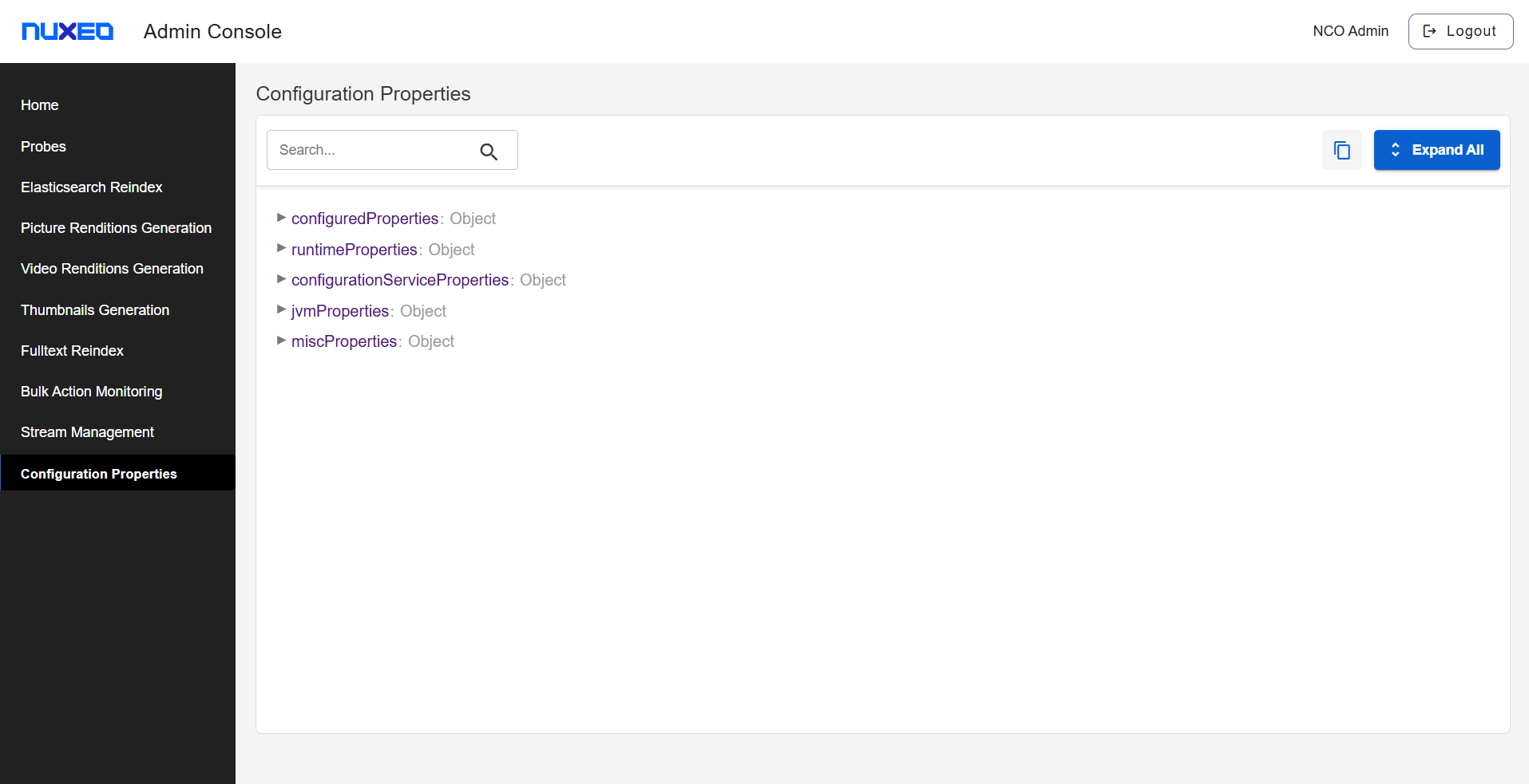 A new Configuration Properties section has been added to the Nuxeo Admin Console.�This enhancement provides administrators with a centralized view of all configuration properties available for the current Nuxeo instance and its environment. By consolidating these settings in one location, the Admin Console now offers improved clarity, easier troubleshooting, and greater transparency into the platform’s operational configuration. This update ensures that all platform‑level configuration properties are easily accessible directly within the Admin Console UI.